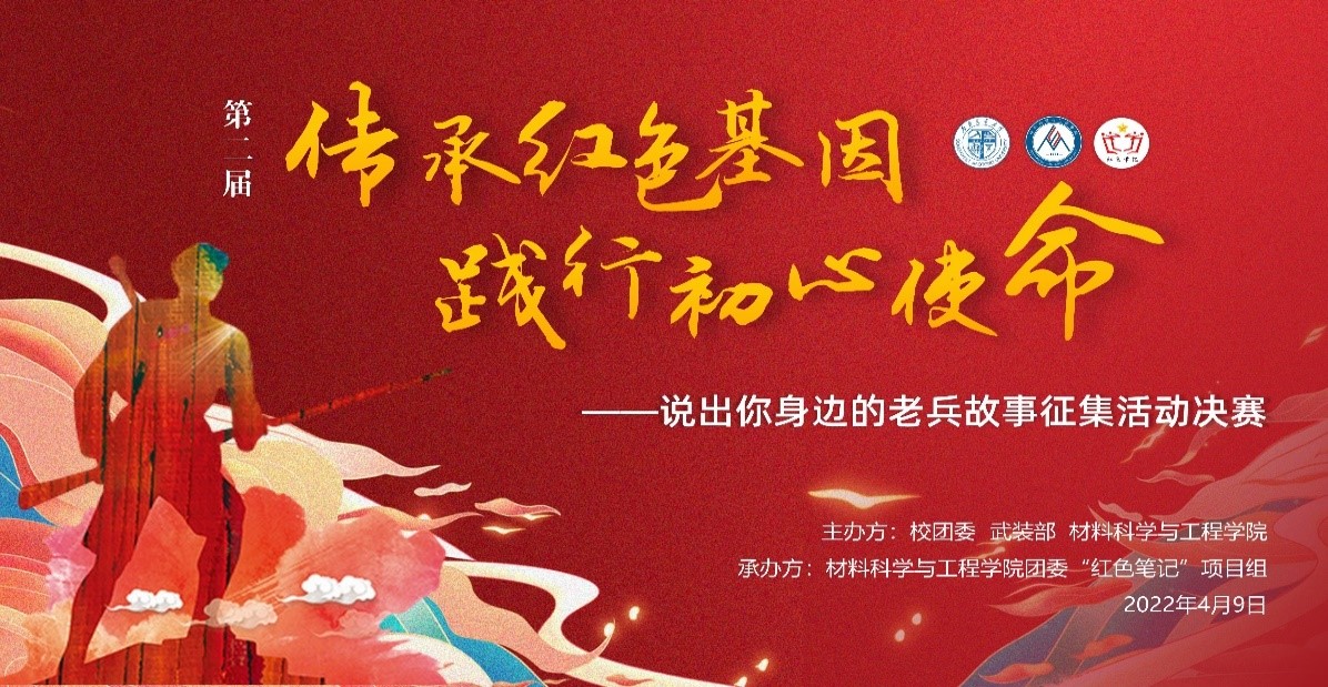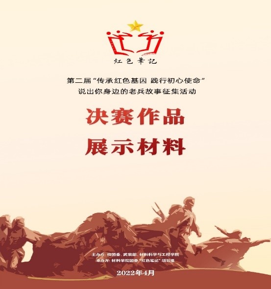 为了庆祝中国共产党成立100周年,弘扬伟大建党精神,迎接中国共产党第二十次全国代表大会胜利召开,进一步在广大师生中弘扬和践行社会主义核心价值观,挖掘红色故事,传承红色基因。由校团委、武装部主办,材料学院团委、“红色笔记”老兵寻访项目组承办的第二届“传承红色基因 践行初心使命”——说出你身边的老兵故事征集活动如期举行。本次活动主要分为前期、中期、后期三个阶段。