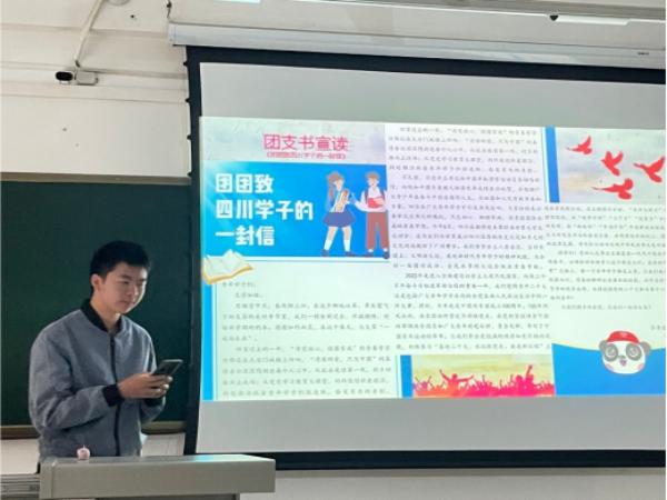 伴随着嘹亮的团歌声,本次团课拉开了帷幕。首先,由各班团支书宣读《团团致四川省学子的一封信》,在信中团团通过回首过往一年,充分肯定了中国当代青年在抗击新冠疫情和举办冬奥会期间所做出的杰出贡献,同时希望我们在新的时期奋勇拼搏,以优异成绩迎接党的二十大的召开。