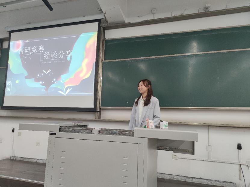 会议第一项,龚波、周孟雪向同学们分享自己的大学学习经验方法。龚波对2021级大一第一学期期末成绩和四六级成绩进行分析,并通过自身学习经验鼓励同学们,认真对待专业课程、一股作气通过六级。龚波提出,作为大学生,要做到认清自己、认清努力、认清他律以及结交优秀的人。周孟雪则向同学们分享自己的科研竞赛经验,鼓励同学们积极参与到科创竞赛中来。同学们对学长学姐的分享深有感触,反响热烈,掌声不断。