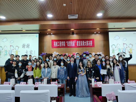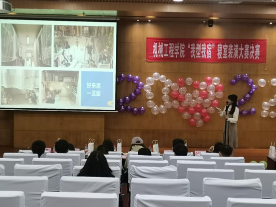 为迎接中国共产党第二十次全国代表大会召开,继续加强学院在思想政治工作、动员和组织团员青年、关心青年利益和密切联系青年群众等方面的工作,促进大学生室友之间的团结合作,创造美好的生活空间,进一步推进学生寝室文化建设,营造温馨舒适的寝室环境,展现机械学子积极向上的精神面貌,由机械工程学院团委主办、学生园区管理中心承办的“我型我宿”寝室装潢大赛决赛于3月25日在图书馆一号报告厅举行。