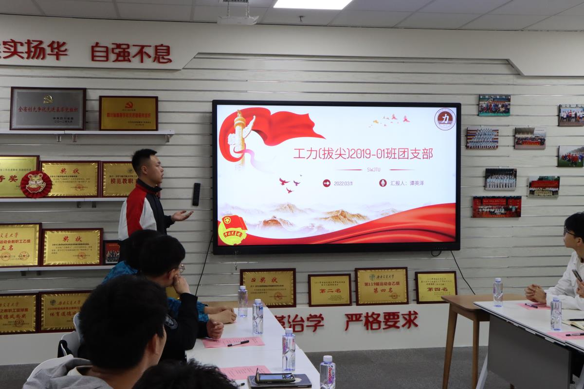 首先,工力(拔尖)2019-01班团支部分享了团支部建设经验,团支书谭英泽同学从支部建设、组织建设、学风建设等方面介绍2019级拔尖班团支部工作经验。