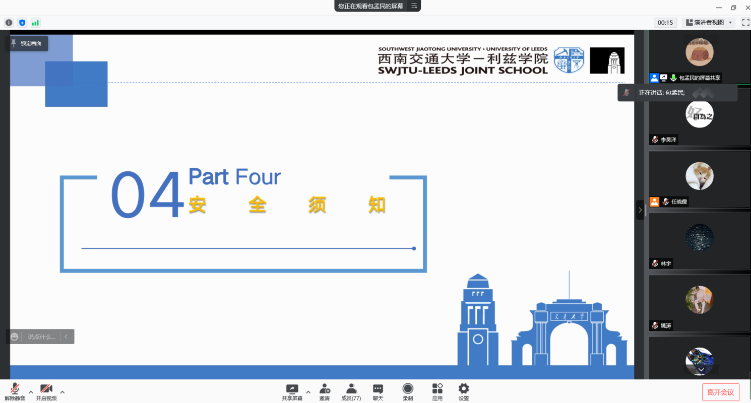 最后,包孟民详细介绍了此次社会实践过程中的具体要求和各项材料报送标准及安全注意事项。