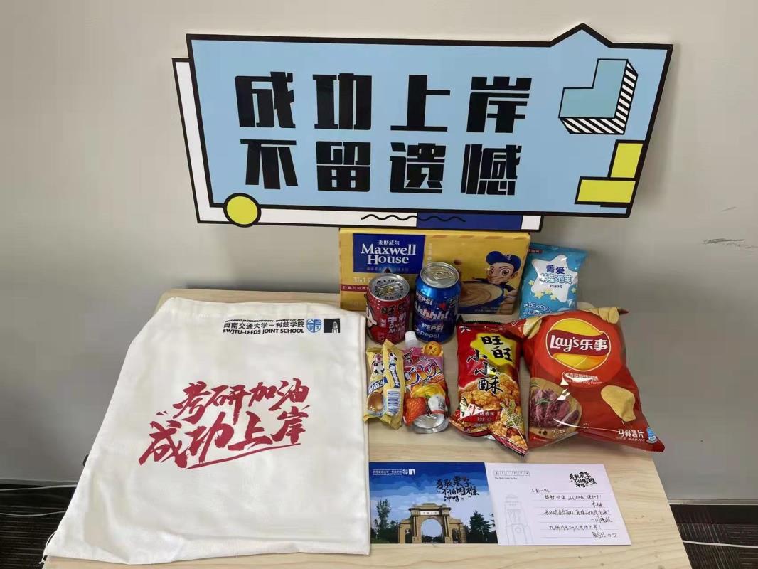 下午3:30,2018级辅导员刘爽、李东杰在X30545为同学们发放考研加油大礼包。本次考研送温暖活动准备的考研祝福大礼包由2018级辅导员老师精心挑选,内含八样有美好寓意的礼品:百事可乐、乐事薯片、旺仔牛奶、旺旺礼包、喜之郎、棒棒糖、咖啡和定制版“考研祝福卡”。百事可乐、乐事薯片寓意考研顺利,成功上岸;旺仔牛奶、旺旺礼包寓意锦鲤附体,运气加成;喜之郎、棒棒糖寓意功不“糖”捐,玉汝于成;咖啡寓意考的全会,“啡”上不可;“考研祝福卡”则表达学院老师对同学们的衷心祝愿。收到考研大礼包的同学们纷纷表示,非常感谢学院和老师们的关心,定将成功上岸,不辜负学院和老师们的期望。