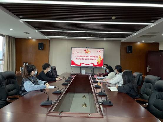 2021年11月26日上午,机关直属团支部在综合楼711会议室专题传达学习党的十九届六中全会精神。机关团支部书记邬洪涛同志带领全体团员学习。