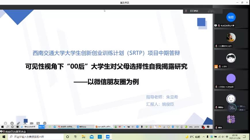 11月24日20时,2021年人文学院新闻传播学类SRTP项目中期答辩会召开,由于疫情原因,答辩以腾讯会议平台的形式在线上举行。本次答辩会旨在对各组项目的开展情况进行集中检查,以便于学院根据项目进展状况调整机制,对项目进行动态调整。