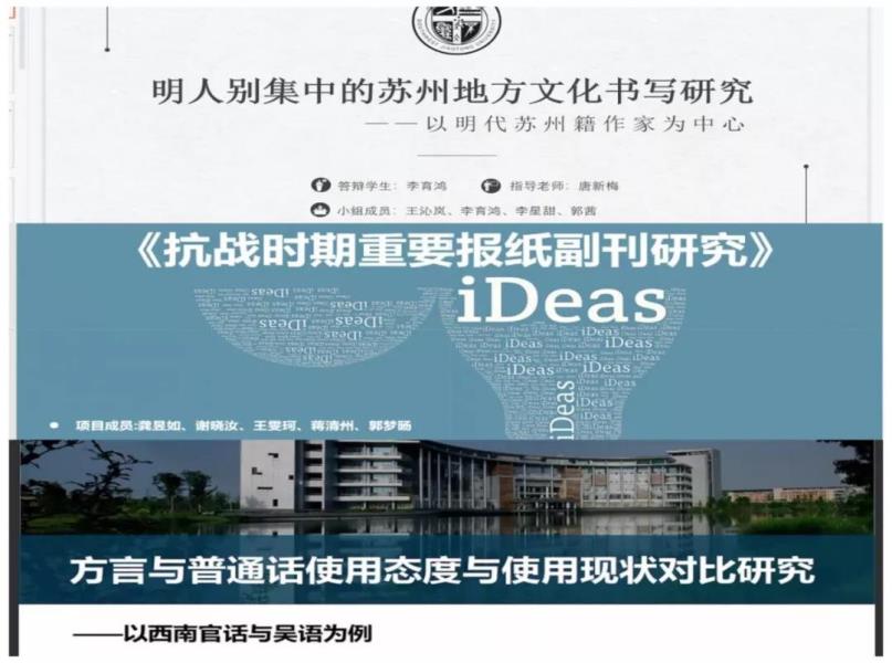接下来,其他小组就“明人别集中的苏州文化”“抗战时期重要报刊副刊研究”“方言与普通话使用态度与使用现状对比研究”“重庆地区古代‘八景诗’收集与整理”“苏轼绍圣四年诗译注”等课题进行答辩。