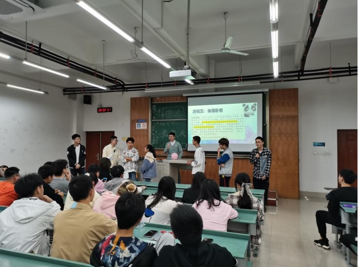 接下来便是紧张刺激的游戏环节,在游戏中大家紧密协作,从需要考验大家的记忆力的“我的周围都是谁”到手脚并用的肢体语言大考验,从比拼头脑灵活度的脑筋急转弯到考验组员默契的无声传话筒,新老团委成员们打成一片,活动现场充满了欢声笑语。