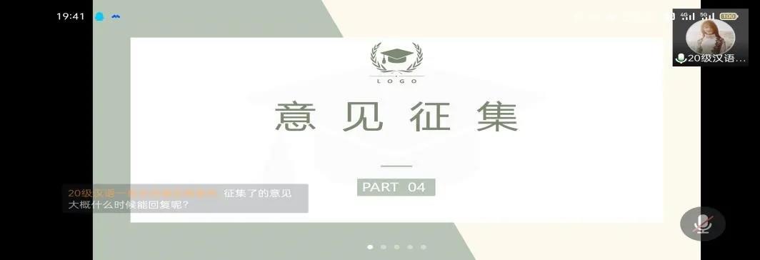 在接下来的线上征集意见环节中,参加本次会议的同学提出了问题,比如询问何时能够得到征集意见的回复,郑洁同学以认真负责的态度回答了同学们的问题。