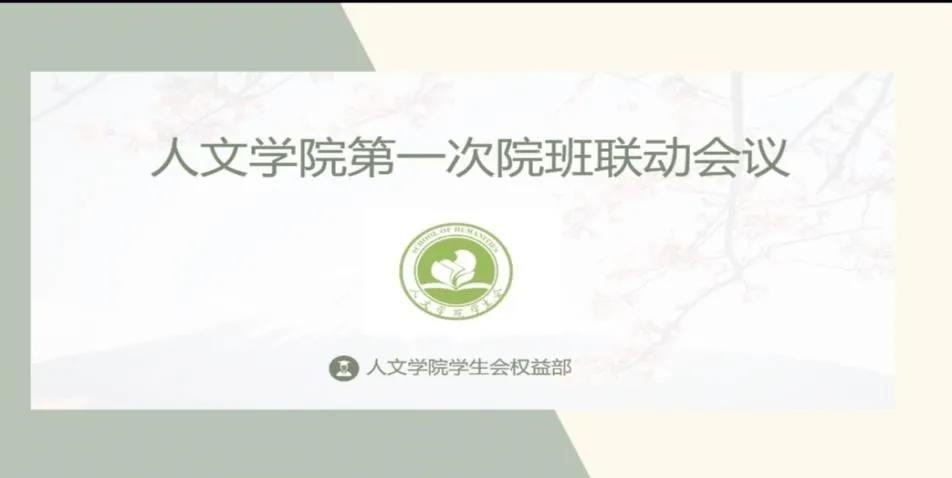 11月19日19时30分,人文学院2021年第一次院班联动会议召开。为配合学校疫情防控工作,本次会议以线上的的形式进行。本次会议由人文学院学生会权益部部长郑洁同学主持召开,人文学院本科生各班生活委员和权益部各成员参会。