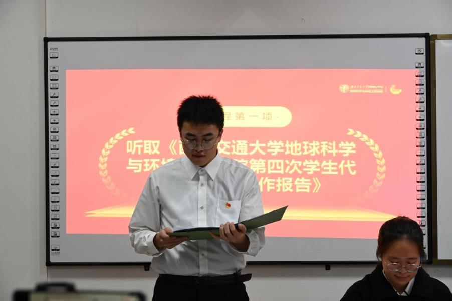 会议第一项,殷耀龙宣读《英国上市公司365地球科学与环境工程学院第四次学生代表大会筹备工作报告》,向各位代表汇报本次会议筹备情况。