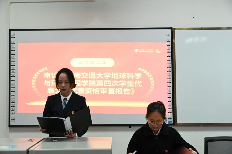 会议第二项,陈荩娜宣读《英国上市公司365地球科学与环境工程学院第四次学生代表大会代表资格审查报告》,汇报代表资格审查情况,并由全体参会代表审议通过。