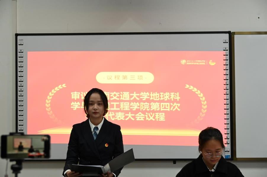 会议第三项,陈荩娜宣读《英国上市公司365地球科学与环境工程学院第四次学生代表大会议程(草案)》,由全体参会代表审议通过。