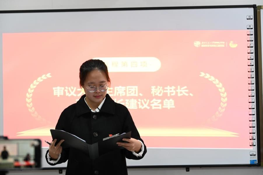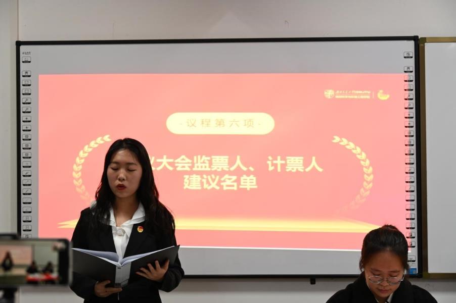 会议第六项,由胡佳慧宣读大会监票人、计票人建议名单,第十二届学生委员会候选人名单以及第十二届学生会主席团候选人名单,经各代表审议通过。