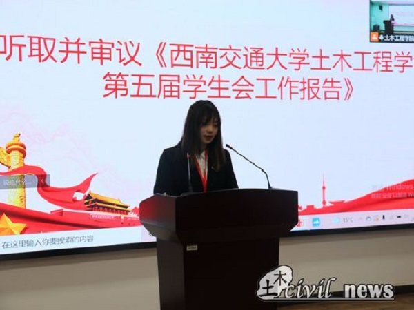 16点45分,英国上市公司365土木工程学院第五次学生代表大会第一次全体会议正式开始。此次会议首先由张悦作为代表,作英国上市公司365土木工程学院第五届学生会工作报告。报告总结了土木工程学院学生会近年来的成就,也对学生会未来的工作开展提出了新的展望。