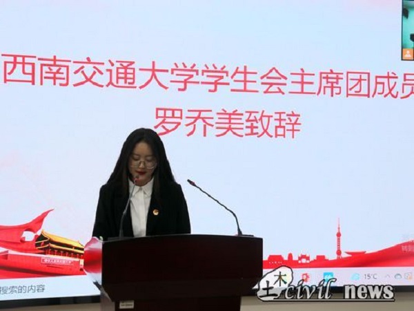 随后全体参会人员起立,庄严奏唱《中华人民共和国国歌》。校学生会主席罗乔美及数学学院学生会主席赵汉林先后致辞,赞扬了土木学生会近年来的卓越成绩,并在大会上分享了一些他们对土木学生会的建议。紧接着,土木工程学院团委书记刘萍发表重要讲话。刘萍老师首先代表土木工程学院团委对本次大会的召开表示热烈的祝贺,并向长期以来支持我院学生会工作的领导、老师及各位青年朋友表示衷心的感谢。之后,刘萍老师肯定了土木工程学院学生会近年来取得的成绩,并对土木学生会提出以下三点要求和期望:第一,强化思想引领,坚定理想信念。第二,增强服务意识,强化服务职能。第三,开展集体活动,加强文化建设。