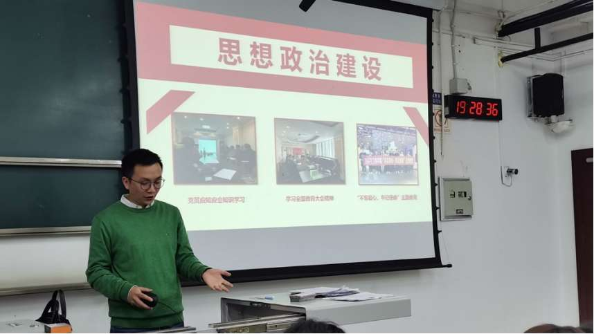 在讲座的第二部分,孔老师分享了飞设2017-01班、力学硕士2018-01班的忠忱班集体答辩PPT和工力(拔尖)2019-01班团支部的十佳团支部答辩PPT,让现场同学深刻感受到,建设优秀班集体需要强大的凝聚力以及班委们的精心付出。