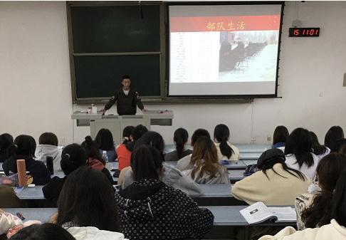 2021年10月15日下午,为帮助本科新生坚定理想信念,厚植爱国主义情怀,外国语学院于X1516教室开展“坚定理想信念 厚植爱国情怀”本科新生入学教育。讲座邀请了学院服兵役退伍学生陈俊进行分享,2021级辅导员王丽平老师主持,2021级全体学生参加。