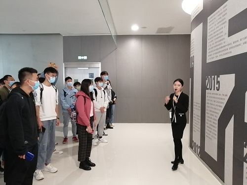 大家在讲解员的引导下,详细地听取了关于腾讯从建立、发展到壮大过程的介绍,以及腾讯的发展成就、社会慈善、福利制度。团员们边听边细细感受腾讯的企业文化、工作环境。