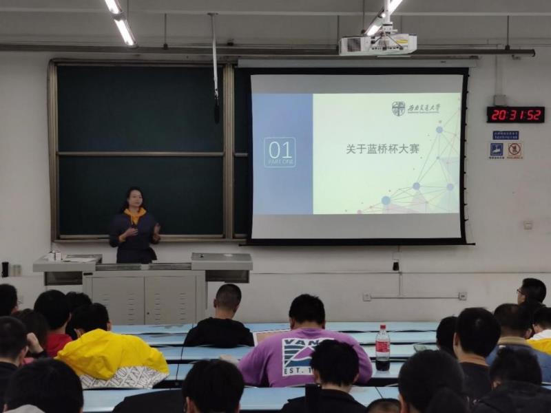 之后,喻琇瑛老师介绍了蓝桥杯大赛的背景和软件类竞赛内容,丰富了同学们的竞赛知识,并为同学们分享了西南交大OJ、洛谷等多个竞赛学习网站。
