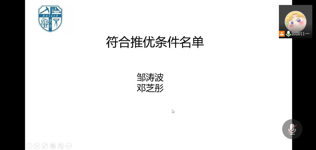 本次大会首先由甘诗源介绍“推优”办法并宣读符合“推优”条件的团员名单,2020-01班的邹涛波、邓芝彤两名同学入选了该名单。