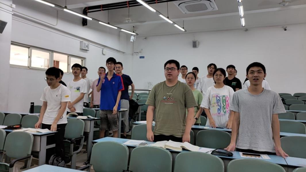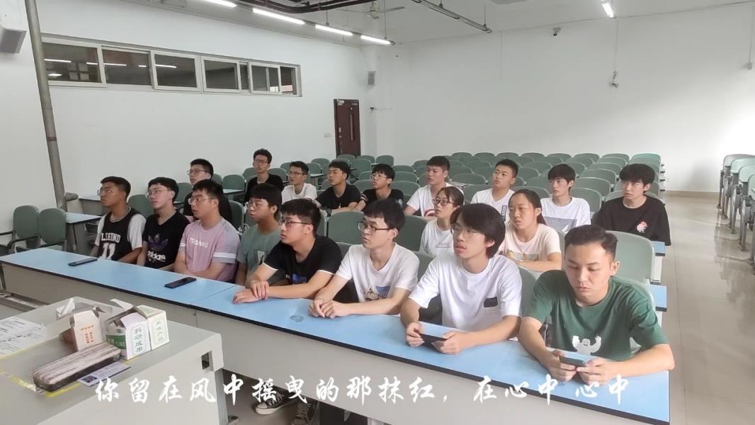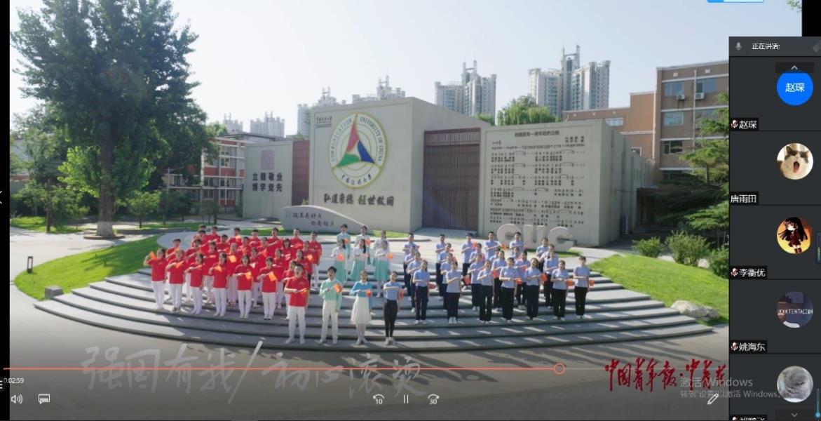 电子2020-02班团支部的同学们在中国共青团团课的背景音乐下,在爱国情怀鼓舞下,一起合唱了中国共青团团歌,并表达了自己“请党放心,强国有我”的决心与意志。