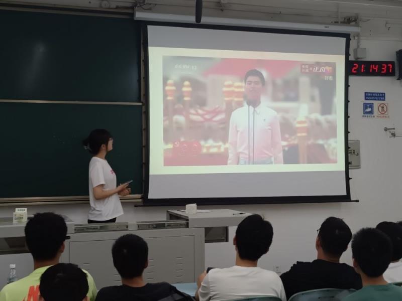 智控2021-03班团支部全体同学合唱团歌。铿锵有力的歌声响彻整个会议室,也充分激起了在场各位同学学习团课的热情。