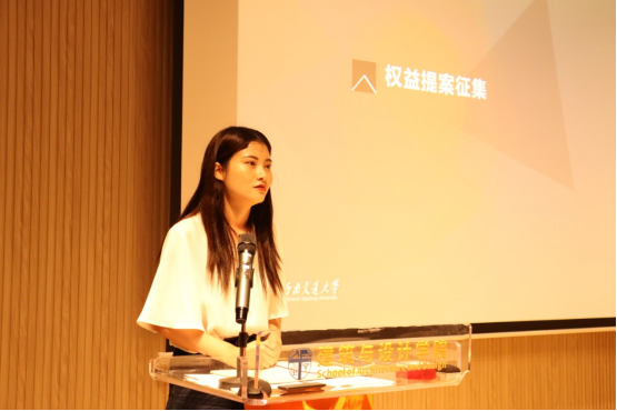 最后,建筑与设计学院第三届学生代表大会委员会指导老师李国仪上台致辞。她表示,建筑与设计学院学代会是学生参与学校和学院民主管理、民主决策、民主监督的重要渠道,并真诚的希望学生代表提出对学院、学校的建议和意见。随后,参会学生代表积极提出“教室插座不足”等生活和学习方面的问题提案,现场工作人员及时进行了记录。
