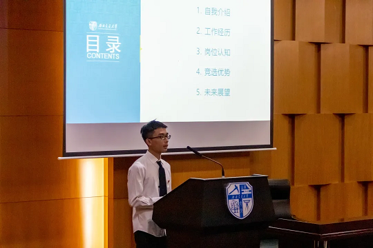 之后,进行学生会主席团成员选举。四位候选人依次上台进行竞选演讲,由与会代表对其进行投票,拟从中选取三名作为机械工程学院学生会主席团成员。