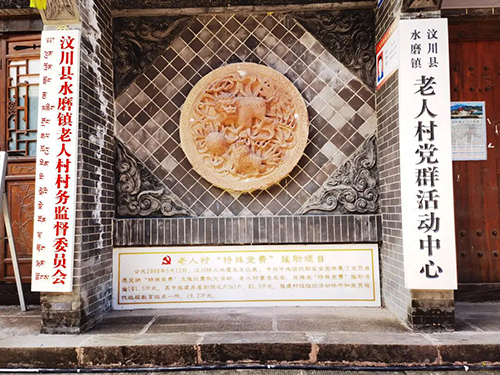 在水磨镇,支部来到了2008年汶川特大地震后整体异地重建的阿坝师范学院进行考察。青山绿水环抱着这所灾后重建的新校园,明亮的阳光洒在学子们微笑的脸庞。校外连绵的一片新居,是由广东佛山援建的水墨古镇,校门口的道路正是以援建单位命名的佛山大道。