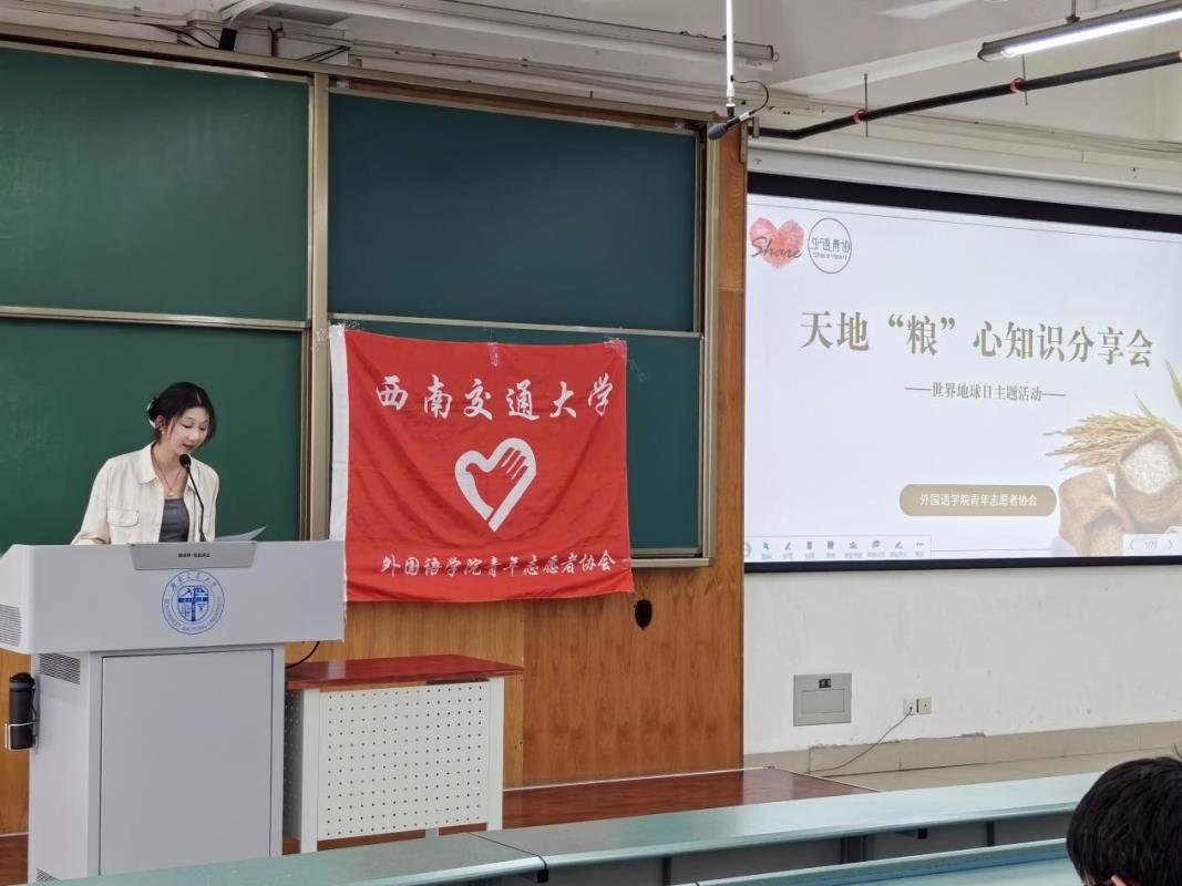 4月20日,外语青协在犀浦校区举办了线下世界地球日粮食知识分享会。会上同学们积极分享自己的想法,有的同学从大食物观的广阔视角出发,深入剖析粮食安全的重要性及实践路径;有的同学则聚焦中国在全球视野下的粮食安全本土实践,通过丰富的案例和详实的数据,引领大家深入探索中国特色的粮食安全道路。分享结束后,全体参会人员共同观看了纪录片《粮食安全思政大课》。现场秩序井然,同学们沉浸其中,深刻理解了我国粮食安全道路的实践探索,进一步明晰了国家战略发展脉络,心中的责任感与使命感油然而生。