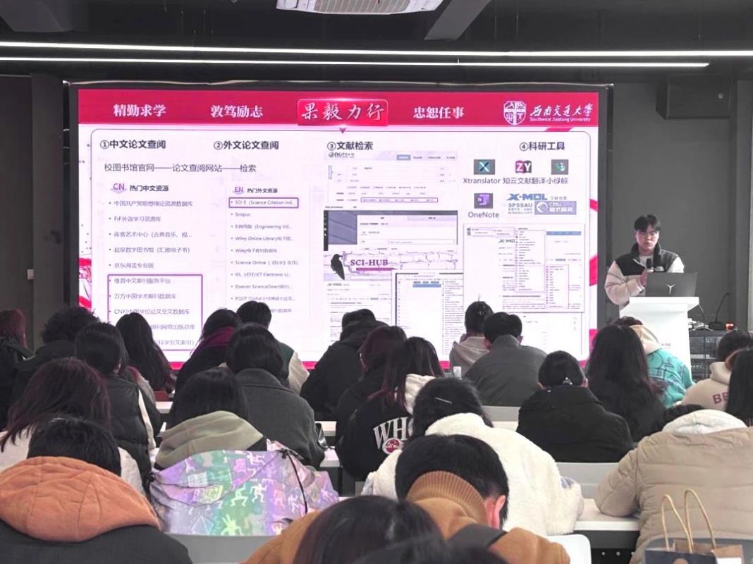 赵肖同学以自身发表SCI一区论文的经历为切入点,系统讲述了学术研究的底层逻辑。她强调:“文献综述需先横向对比国内外研究进展,再纵向梳理领域发展脉络,从而挖掘尚未解决的‘研究缺口’。”针对论文投稿,结合国内外期刊的审稿差异,建议根据研究时效性灵活选择投稿方向。此外,还分享了论文图表优化、数据可视化等提升审稿通过率的实用技巧。