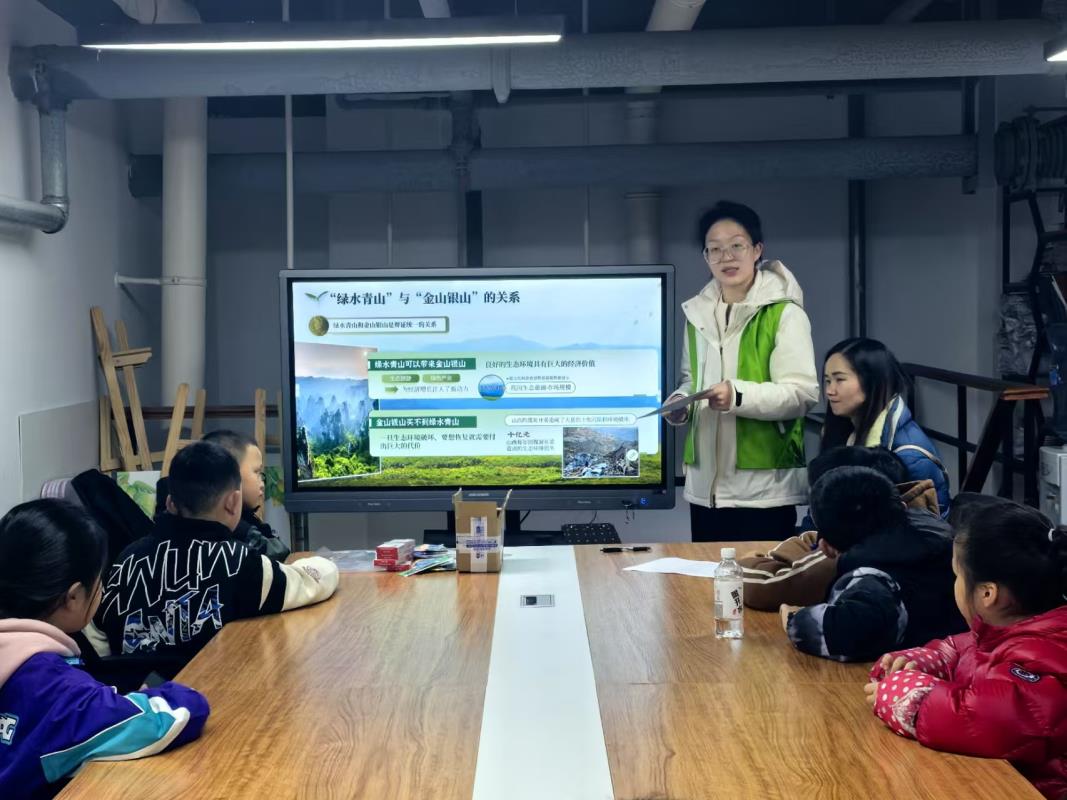 活动伊始,宣讲团成员任芸昕以《绿水青山就是金山银山》为题,从近期热门综艺《种地吧少年》切入,深入浅出地讲解了“绿水青山”与“金山银山”的关系、生态文明建设的重要性以及助力生态建设的方法。她从全球气候变暖、生物多样性丧失、资源短缺等多个维度展开,用生动案例引导孩子们深刻理解生态文明建设的重大意义,并激发了他们以实际行动投身生态文明建设的热情。