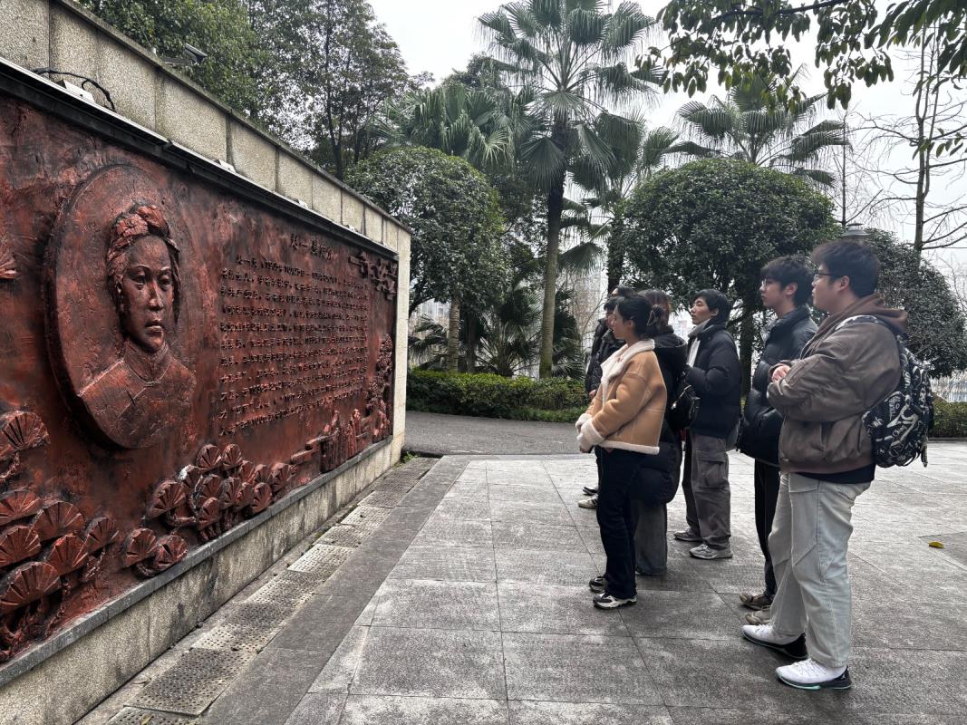 2025年1月14日,在寒冬中怀揣着崇敬之情,材料科学与工程学院学生会同学们前往宜宾赵一曼公园,开展了一次意义深远的实践活动,活动由学院团委书记、青年讲师团成员王誉静老师带队。此次活动不仅是一次对革命历史的深刻学习,也是一场追随习近平总书记足迹、缅怀英雄的精神之旅。