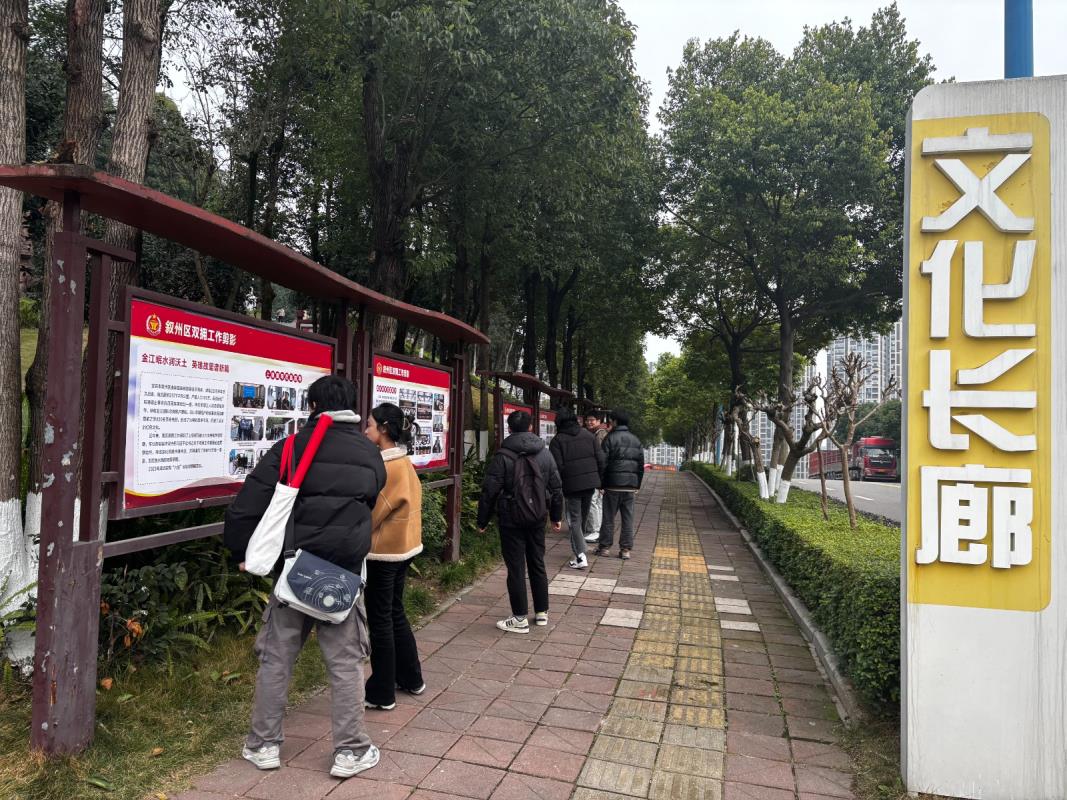 最后,队伍走到山脚下的文化长廊,看到新时代宜宾政府“双拥”工作的开展情况,进一步了解了国防知识、厚植国防情怀。