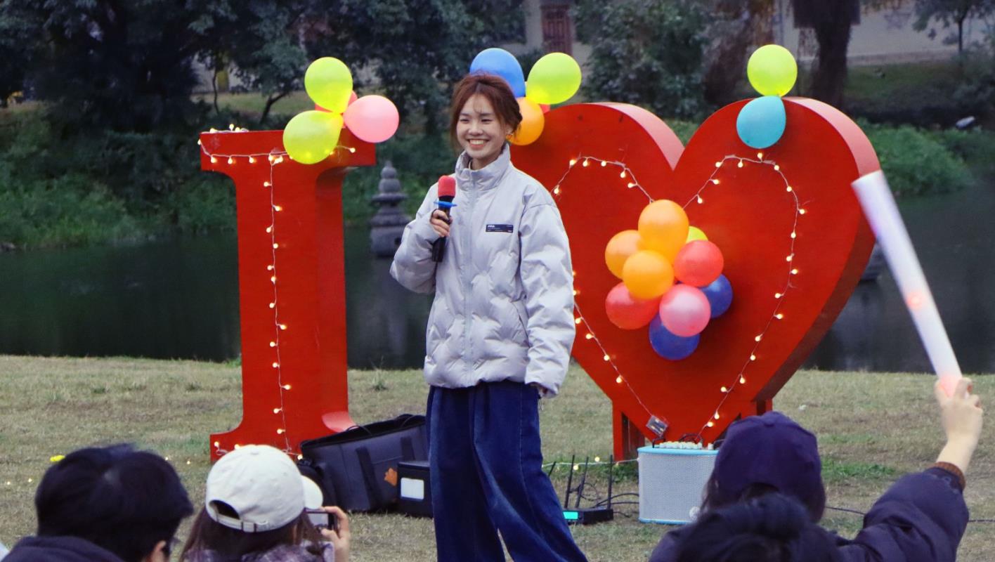 音乐会在动听的歌声中徐徐进行,时而温婉时而热烈,台下的荧光棒随着节奏舞动,如痴如醉,观众们沉浸于音乐海洋,久久无法自拔。活动中场休息中穿插以接歌词游戏,观众积极参与,更有辅导员老师带来歌曲演唱,现场笑声与掌声不绝于耳,不断将音乐节的氛围推向一个又一个高潮。