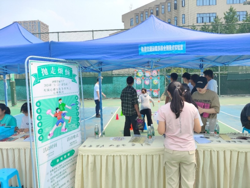 为增强学生心理健康意识,学校于4月26日下午隆重举办了“3·25(善爱我)”校园心理文化节之心理集市活动。其中,轨道交通运载系统全国重点实验室精心策划的“抛走烦恼”活动以其有趣、独特的活动方式深受同学喜爱,引发同学们广泛关注和热烈反响。
