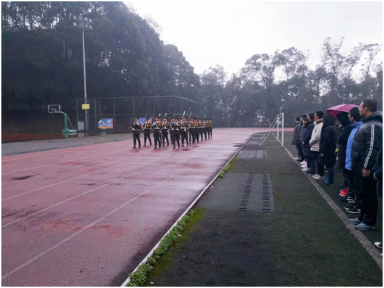 2018年12月9日,由校团委主办的“纪念一二·九爱国运动八十三周年”升旗仪式在峨眉校区中山梁体育场顺利举行。国旗班峨眉支队的全体队员参加了此次活动并担任出旗、升旗任务。