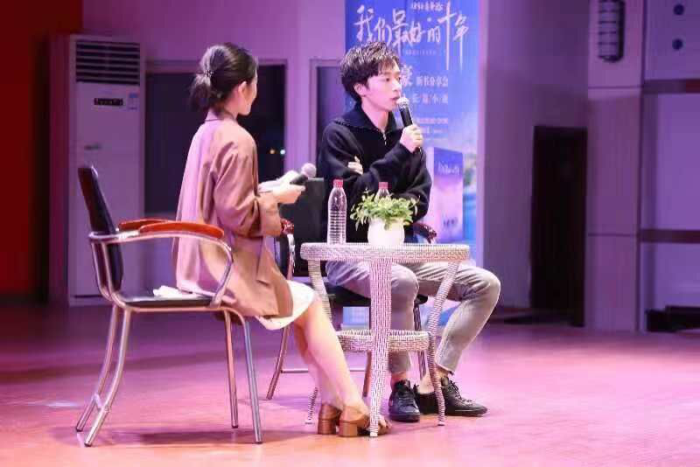 苑子豪首先分享了他的第一部个人著作——《我们最好的十年》的主要内容,并讲述了他在创作这部作品时所经历的困难与艰辛。由于这部作品没有哥哥苑子文的参与,所以整部作品在字数、构思等方面的对他来说都是一次全新的挑战。苑子豪坦言,对于首部独挑大梁的作品,在创作初期倍感压力,但经过不懈的坚持与努力,最终克服了创作的瓶颈,完成了这部新作。在谈到作品中的主要人物时,他主要和大家分享了作品中的主人公角色的设计。作品中的主人公是基于他自身的经历、性格等多方面进行塑造的。正如作品中男主角已临近而立之年,一路平坦顺畅,不曾遇过大波浪,但却在生活面前,总有胆怯。这正是在硕士毕业之后,正式进入社会时苑子豪自身所面对的困境。他表示,无论是作品中,还是现实生活中,面对困难,我们都应该正面回应,在生活的摔打中成长。