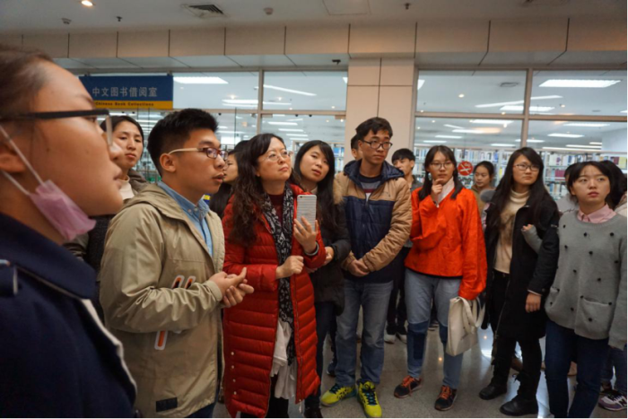 在图书馆暖色的灯光里,晚风的寒意被尽数驱散。在西南交大汉服社社长潘磊同学的带领下,参观展览的同学们近距离直观感受了汉服的美丽。参展作品除了人物摄影之外,还有部分静物摄影,传达出汉服在当今社会所展现出的蓬勃不息的生命力。讲解以作品中出现的汉服形制为基础,结合现场部分社员身着的汉服,对襦裙、袄裙、曲裾、半臂、比甲等形制作出了详细生动的讲解,具体详实,生动形象。解说结束之后,现场观展的同学与老师进行了合影留念。