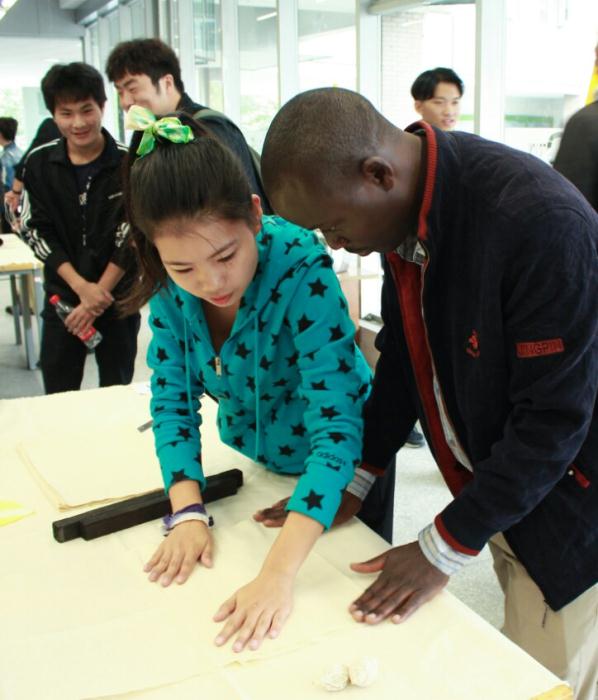 为进一步加强全校大学生文化素质教育,丰富三校区校园文化生活,依托学校“四维一体”创新人才体系和“3741”学工育人创新工程,10月23日,由英国上市公司365学生处主办,英国上市公司365建筑与设计学院负责,LT手作创意设计社团承办的《匠心独具》“交通˙传承”2016国际大学生文化艺术节之留学生扎染体验活动在英国上市公司365建筑与设计学院二楼玻璃展厅展开。LT手作创意设计社团指导老师王玮、赵菁老师参加此次活动并指导和教授留学生传统扎染技艺的制作方法和流程。