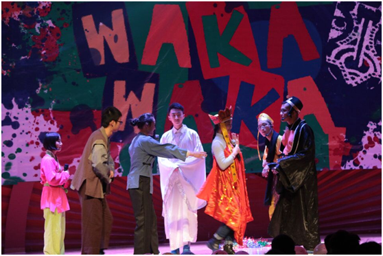 随后,精彩的节目表演开始了,第一个节目是部长秀,平日里看起来严厉的部长们在舞台上展现出了他们可爱活泼的一面。火辣的开场舞首先燃起了全场的气氛,接着,口语部的同学们为我们带来了Dancing with love心随舞动,又唱又跳的舞台剧受到了观众们的一致好评。Chandelier两位女生美妙的嗓音使我们仿佛来到了仙境。猪八戒背媳妇,来自传媒中心的话剧也很精彩,高还原的服装,演员们精彩的表演,引起了台下观众的阵阵笑声,魔术协会也来助场,带来了魔术—魔幻酒吧。抽奖过后,下半场开始了,妩媚的草裙舞使得晚会达到高潮,将小时代与白雪公主结合改编的话剧也同样具有看点,接下来是由影视宣传部带来的歌舞和由外联带来的话剧—感觉身体被掏空。极具Power的舞蹈使晚会达到了高潮,全场观众起立,跟随节奏摇摆。最后晚会在传媒的英文歌曲串烧中接近了尾声。