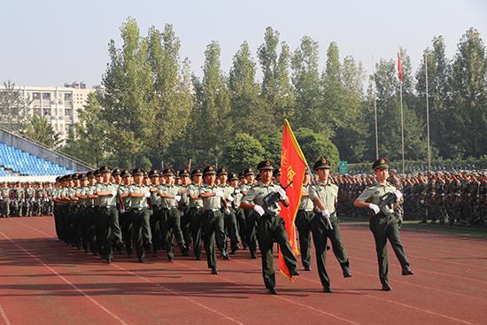 分列式雄壮的军乐响起,各训练有素的连队方阵依次经过主席台,接受各位领导的检阅。整齐划一的步伐展现出了军训新生的素养;铿锵有力的口号,展现出交大新一代学子的昂扬自信的风姿,热血与激情于此刻迸发出不一样的青春。