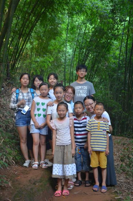 平乐镇附近多山,有著名的金鸡谷。孩子们从小在山里长大,对山里的花草虫鸟再也熟悉不过了。因此我们特意挑出一天来作为课外实践日,与他们一起进山,听他们讲他们最熟悉的大山,而我们也讲给他们各种自然科学知识,一面是没经历过的课本里的理论,一面是从小接触的不知原因的经验,在这座大山里做到了最好的融合。我们不仅相互学习,更重要的是进一步增强了互相的信任与友谊。