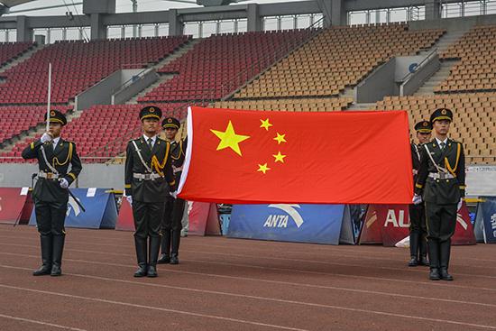 开幕式完毕后,我校国旗班方阵护送国旗退场,出色地完成了本次电气工程学院运动会的出旗任务。同时也预祝本次运动会圆满成功,各班运动健儿们都能取得佳绩,赛出水平,展现当代大学生积极向上的运动精神和青春风采。