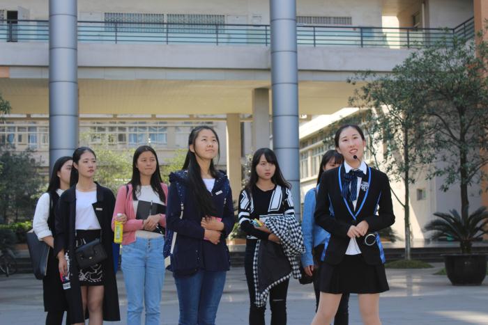 2015年11月1日,今日的蓉城不同于往日阴雨绵绵的天气,是个难得的艳阳天,也就在今天下午,四川大学锦城学院校园大使团的同学来到了我们校进行参观学习。