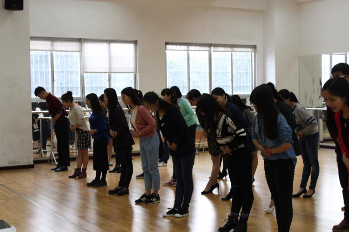 会议结束后,由我校校园大使团团长赵堉汀为两个学校大使进行了礼仪培训,就站姿,走姿,鞠躬,引导手势等一系列内容为大家进行了示范和指导,两校的大使都在轻松愉悦的氛围中学到了许多的礼仪知识,同时也感受到了礼仪文化的魅力。