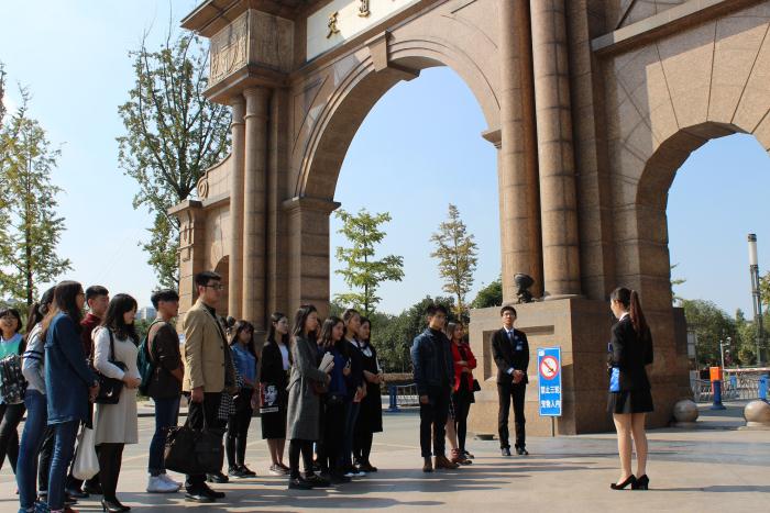 下午1点30分,锦城学院的同学准时到达了犀浦校区的南大门,届时,由我校校园大使赵堉汀、赵鹏飞进行接待。从南大门出发,来自我校大使团的张沛为他们讲解了交大的人文与历史,在成都久违的阳光下,大家缓缓踱步在交大校园之中,很快,到达了讲解的终点――四教。