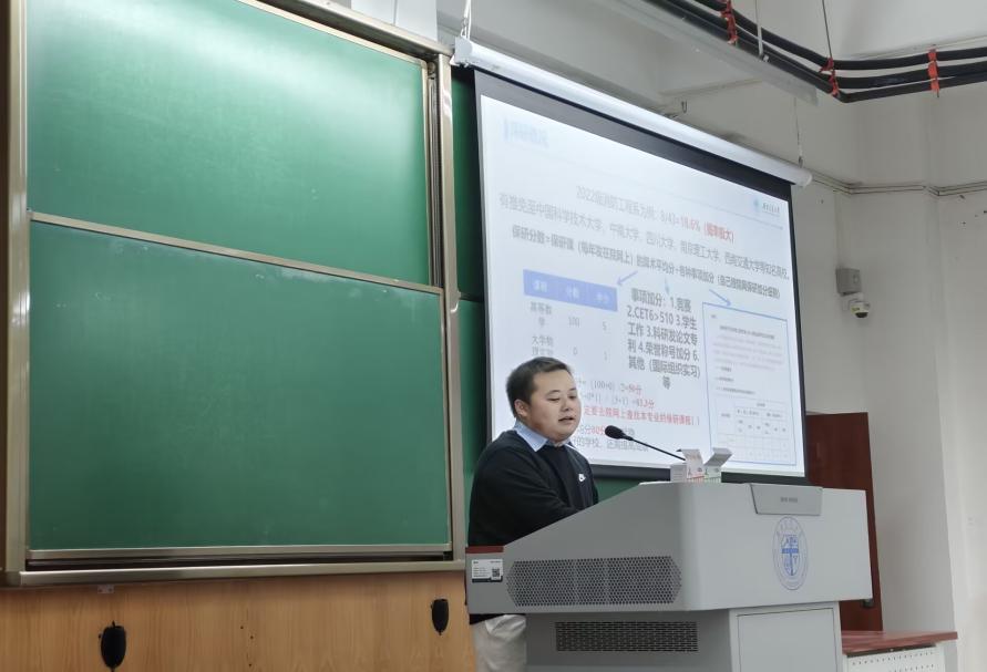 随后分享的是保研至同济大学的测绘工程茅班窦润扬。他强调了学业成绩的重要性,提醒大家及时向学长学姐请教日常学习和期末复习的实用技巧。此外,他还建议同学们根据目标选择不同的奋斗路径。