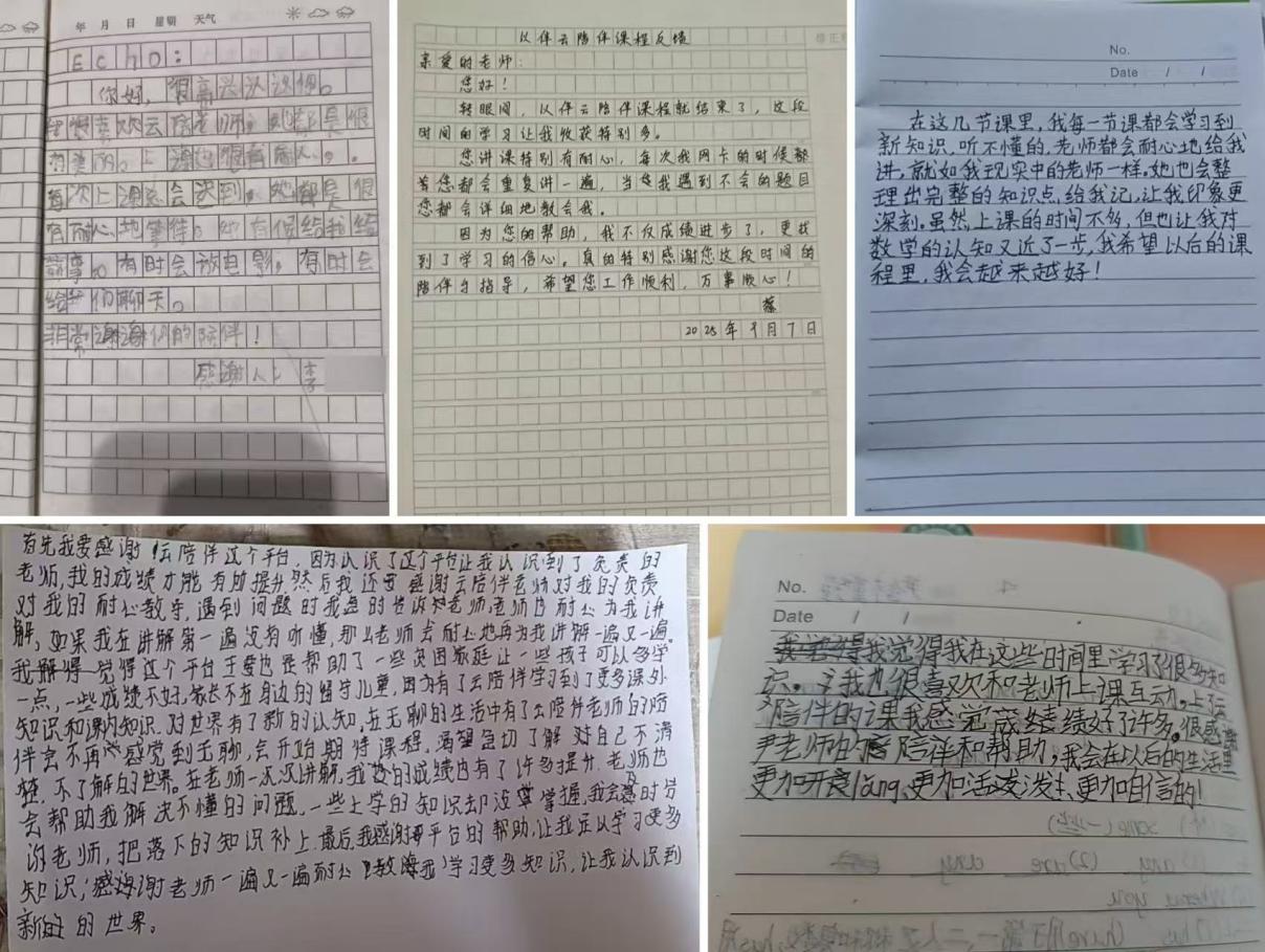 在云端相伴的时光里,志愿者们用爱心和知识搭建起温暖的桥梁,而屏幕那端的孩子们也用最质朴的方式回应着这份陪伴。孩子们写给志愿者的手写信中的真挚语句,成为了志愿者坚持的动力。
