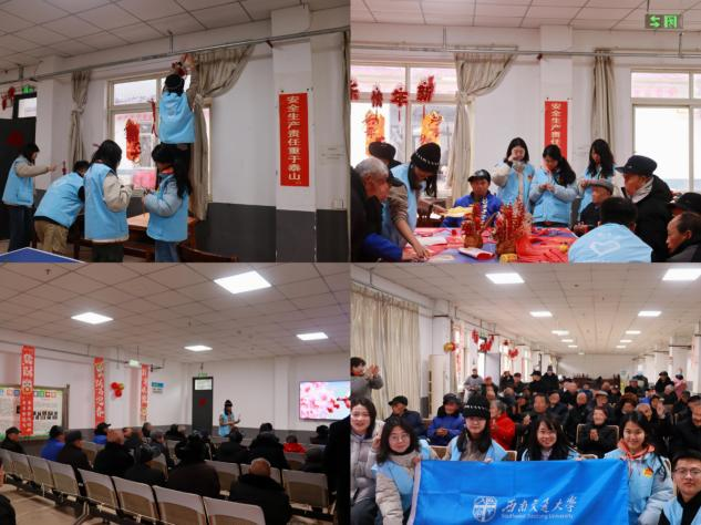 为进一步推动劳动实践与社会服务相结合,实践队前往大邑蔡场敬老院,开展“大寒送暖·敬老传情”主题活动。队员们协助完成“扫尘迎新”环境美化,张贴春联、悬挂灯笼,以劳动营造节日氛围。在“围炉话暖”环节,队员们围绕节气图与老人们共话农事民俗,聆听往昔岁月中的劳动故事,随后一同参与猜灯谜、拓印福字等互动,在劳动中传递关怀,在陪伴中传承文化。